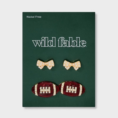 Brown and gold-tone earring set from Wild Fable™ includes bow and football-shaped earrings. Made of nickel-free metal to suit most skin types. Postback closures offer a snug fit in your ears.