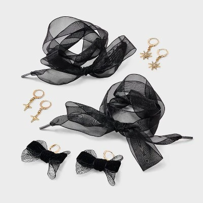Shoe charm set from Wild Fable™ includes black bows and starburst charms. Made of metal and easy to attach. Great for accenting your own shoes or gifting to friends or family.