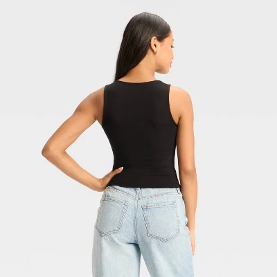 This tank top from Wild Fable™ features an asymmetrical neckline with shirred detailing on the right front. Tailored in a sleeveless, casual-fit silhouette with a long length, this lightweight rayon and recycled cotton blend jersey fabric is comfortable to wear for many different occasions.