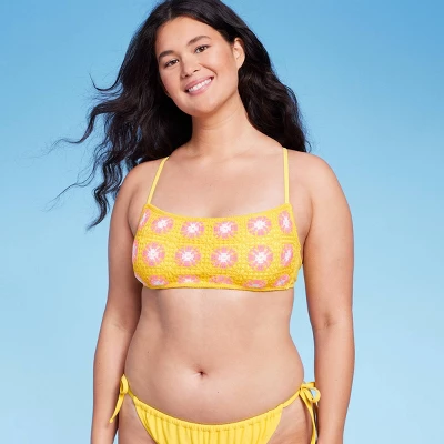 Bralette bikini top from Wild Fable™ features crochet detailing. Soft and stretchy fabric construction provides flexible movement in and out of water. Crisscross back with tie closure. Removable cups offer customizable coverage.
