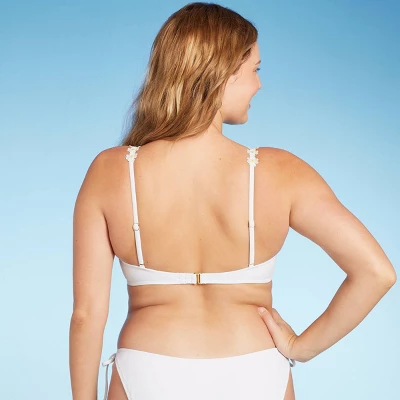 Embroidered daisy strap bikini top from Wild Fable™ in a solid color. Made from soft fabric with spandex for stretchy comfort in and out of the water. Adjustable straps, removable cups and an underwire design offer customizable coverage and fit. Back hook closure keeps the swim top secured.