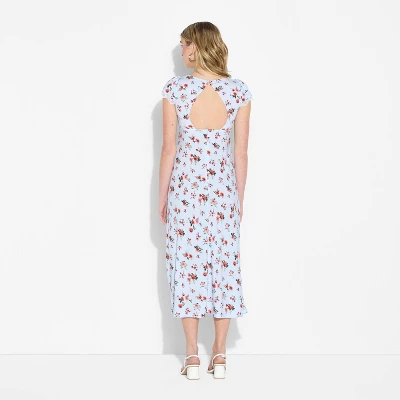 Crepe maxi A-line dress from Wild Fable™ with flutter cap sleeves accented with lace trimming. Features a square neckline with a button back closure and a statement cut-out across the back. Made from lightweight rayon fabric for comfortable all-day wear. Pullover style completes the design with easy on and off.