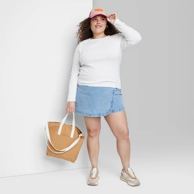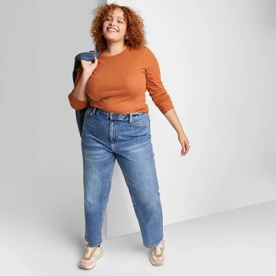 Long-sleeve T-shirt from Wild Fable™ tailored in a regular-fit silhouette with a length that hits below the waist. Made from soft cotton fabric with a hint of spandex for stretchy comfort. Designed with a classic round neckline in a solid hue.