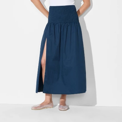 Mid-rise maxi skirt from Wild Fable™ designed with smocked waist and side slit. Tailored from soft fabric in a lightweight design for all-day comfort. Full elastic waistband offers a stay-put fit.